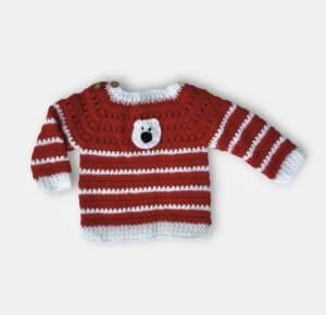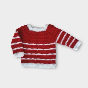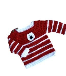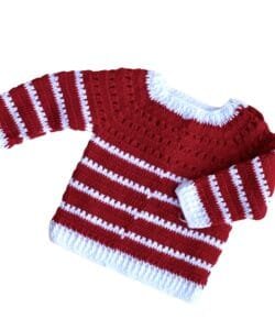 Hand-knitted by underprivileged women in India, these smartly designed striped sweaters are perfect for your little ones. The warm colors highlight their chubbiness and add to their cuteness. Made from soft, premium quality wool, they keep your child cozy and warm during chilly winters. The colors remain consistent and do not fade over time. Care instructions: cold wash or dry clean. Available in various sizes. Proudly made in India.