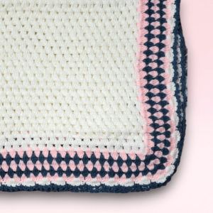 Be the first to review “Hand knitted Baby Blankets Off White Color Pink Border”