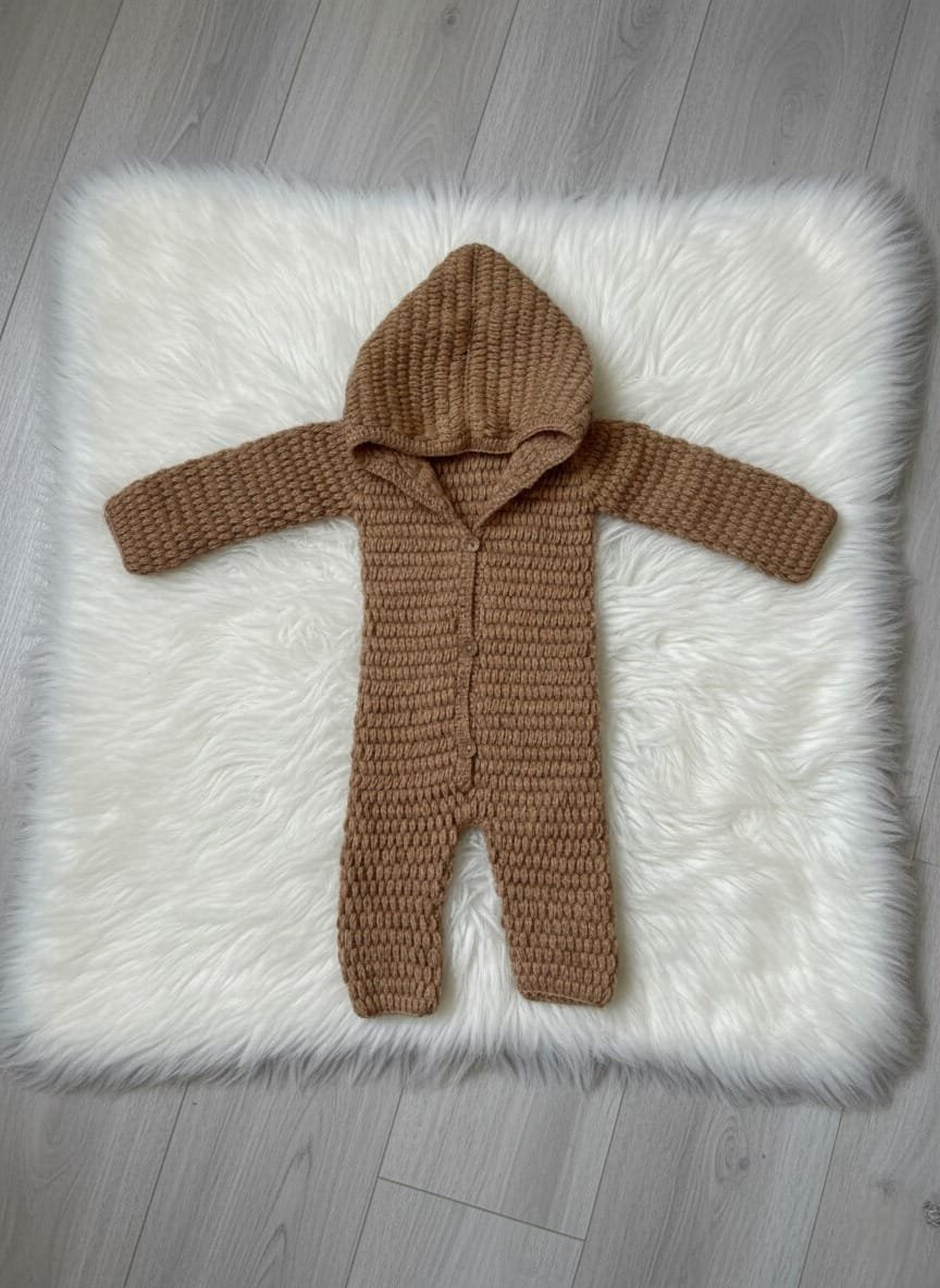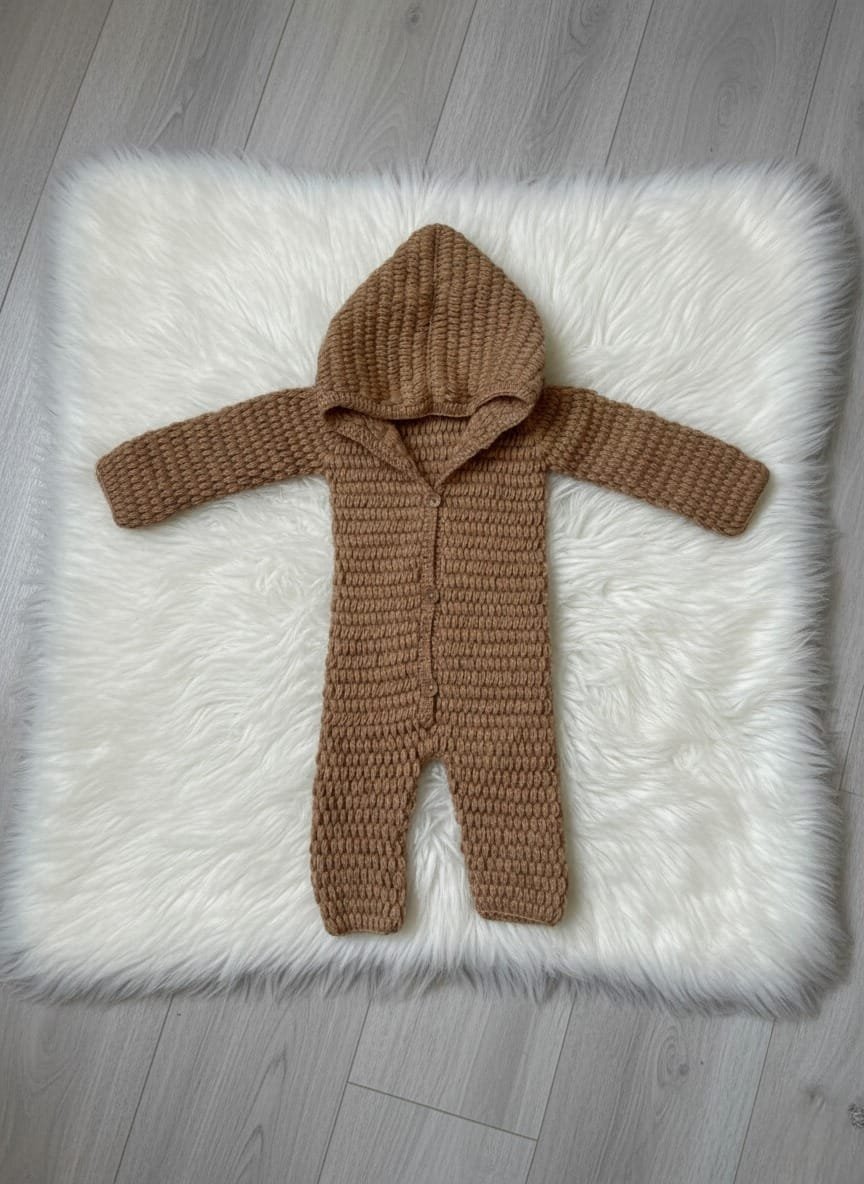 Hand knitted Baby Jump Suit Dirty Brown Color