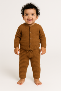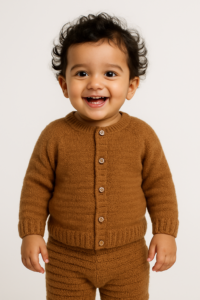 Hand knitted by empowered women of India, our collection of sweaters and pants for your little ones is smart and stylish. The warm colors complement their adorable features and make them look very cute. The soft and comfortable wool keeps them cozy and warm in the chilly winters. The premium quality wool ensures the colors are consistent and don’t fade away with time. You can wash them in cold water or dry clean them. They are available in different sizes and proudly made in India.