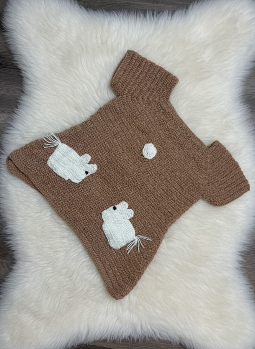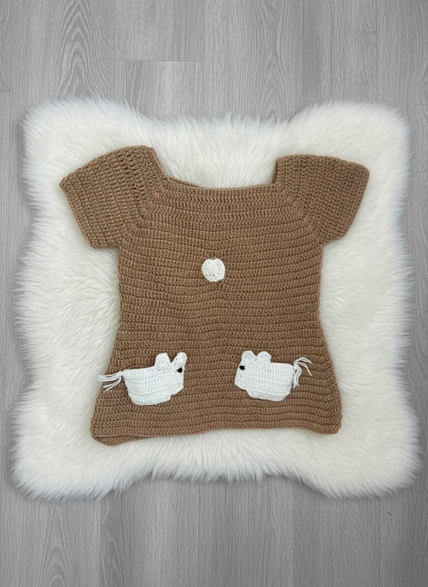 Hand knitted Crochet Brown With Rabbit Pocket Frock
