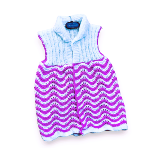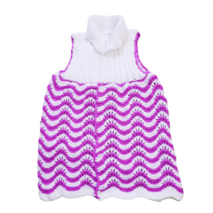 This hand-knitted frock is a perfect gift for your little girl. It is made by empowered women of India who have mastered the art of knitting and crocheting. The frock has a beautiful design with purple and white lehariya stripes that will make your daughter look adorable. The warm colors are consistent and do not fade away with time. The wool is soft and comfortable to keep your child cozy and warm in the chilly winters. The frock is available in two sizes and can be cold washed or dry cleaned. This is a proudly made in India product that supports the livelihood of many artisans.