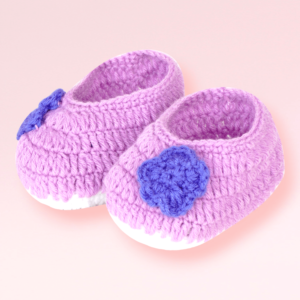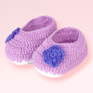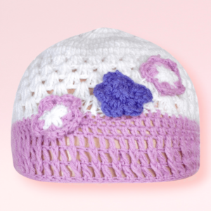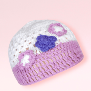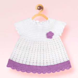 Hand knitted by underpriveleged women of India. Beautifully designed crochet frock with cap and shoes for your little girls. The beautiful white and purple colour would enhance their beauty and make them look very cute. Soft and Comfortable to keep them cosy and warm in the chilling winters. Good premium quality wool used to ensure the colours are consistent and dont fade away with time.. Cold wash /dry clean.Available in two sizes.Proudly made in India.
